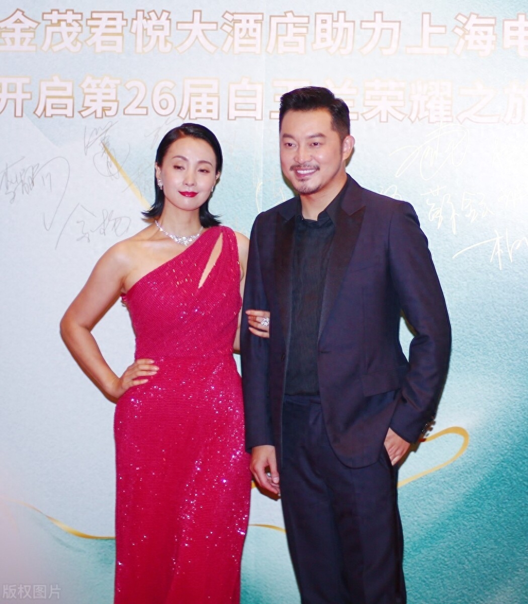48岁陶虹携“前夫”亮相,穿玫红色礼服梳大背头,尽显万种风情