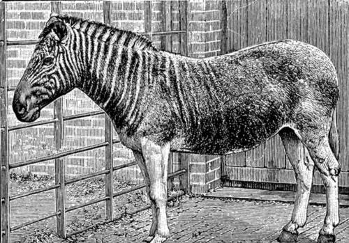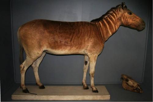到现在,通过人工将斑马和驴交配,得到斑驴兽,可以让我们看到已经灭绝的斑驴大概是长什么样子的。但是斑驴兽很难长大,即使长大也不能繁育。