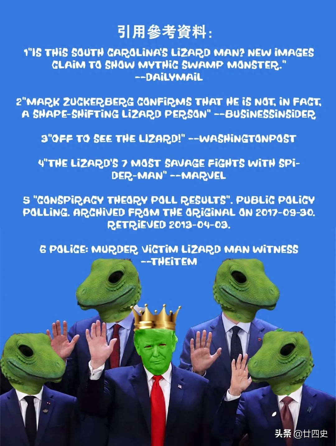 不管是马克·扎克伯格是不是蜥蜴人变的,还是人类政府都被蜥蜴人操纵着;都能说明美国民众对蜥蜴人都市传说与阴谋论的狂热。