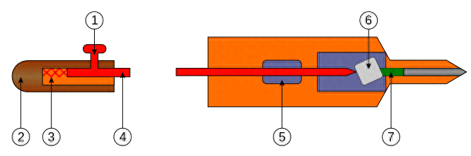 伞枪的伞柄即为枪管,里面装有特殊的剧毒子弹,可以在两米之外发射,能够穿透衣服射入人的皮肤。子弹中的蓖麻毒素会在接下来的二十四小时内扩散。