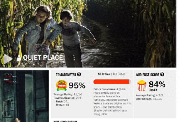 不过,我也注意到了一个十分有趣的现象,《寂静之地》的专业评分要比普通观众评分更高。