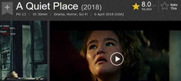 《寂静之地》在美国西南偏南电影节首度亮相,直至4月份正式上映,引起了强烈的反响。三大电影网站清一色的高分,让我对这部电影颇为好奇。