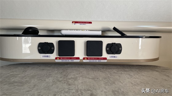 车内还有很多的高端和实用性配置,在会客区内侧卡座处安装有可移动的杯托+充电口的多功能设计,方便实用。