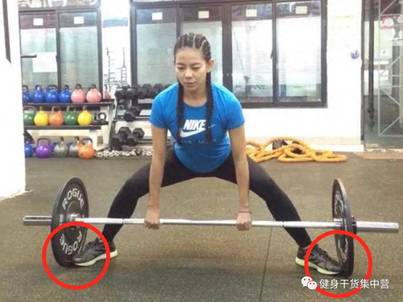 一般来说,相扑拉的启动阶段会比较困难而锁定阶段会比较简单,站的太宽,在这种状态下无法很好地蹬地发力,杠铃会尴尬地纹丝不动