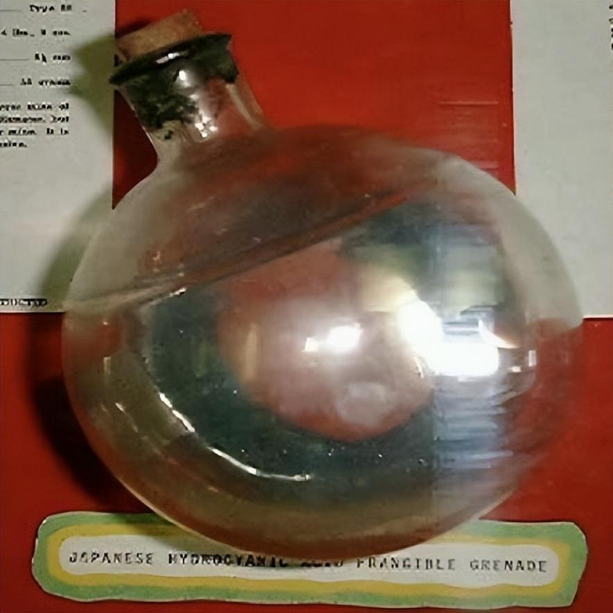 一式氢酸手榴弹和一般的手榴弹不太一样,该手榴弹的全名是一式玻璃瓶氧氢酸毒气手榴弹,顾名思义,这是日本研制出来的一款毒气手榴弹,制作方法是在一个特定的玻璃瓶内灌装浓度达到80%的液态氧氰酸,有时候还会加入一些红铜粉或者是三氯化硅,以使得里面的液体更加稳定。