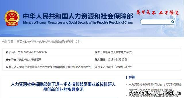 人社部发〔2019〕137号文《人力资源社会保障部关于进一步支持和鼓励事业单位科研人员创新创业的指导意见》(以下简称《意见》)出台,鼓励专业技术岗位上的科研人员兼职创新、在职创办企业(以下简称双创)。