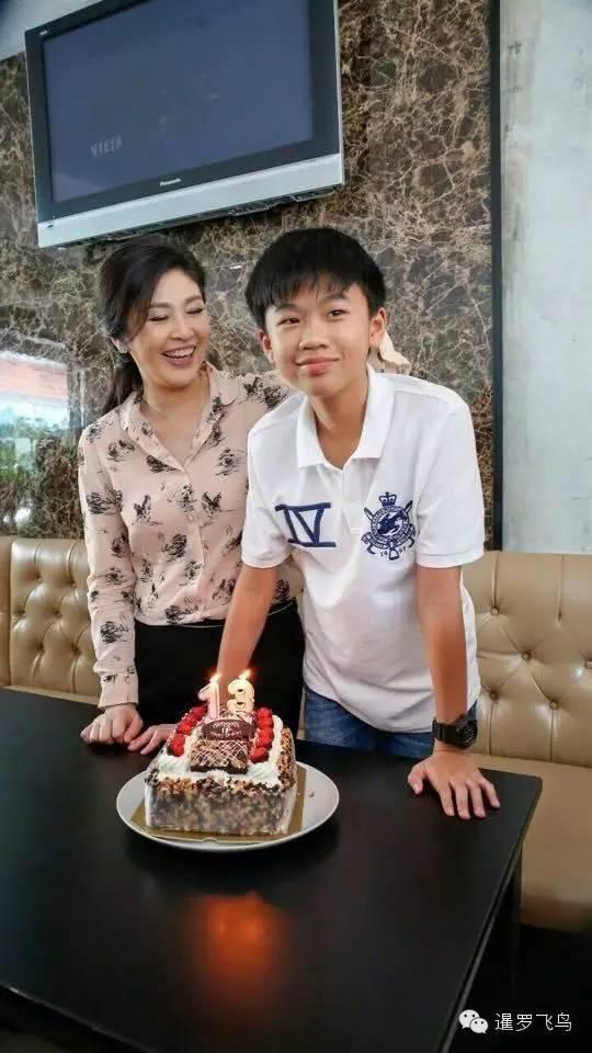 6/10英拉携子布施为13岁儿子庆生。(图片来源:暹罗飞鸟)