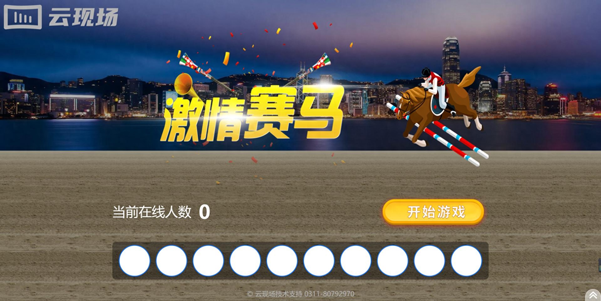 1、3D赛马游戏。用户只需要微信扫码就可以参与进来,快速的摇动手机大屏幕上就会以骏马形式向前奔跑,摇的越快,马跑的就越快。