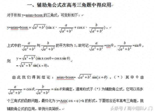 三角函数辅助角公式 书上讲的很零乱 小编把他整理了一下 供读者参考