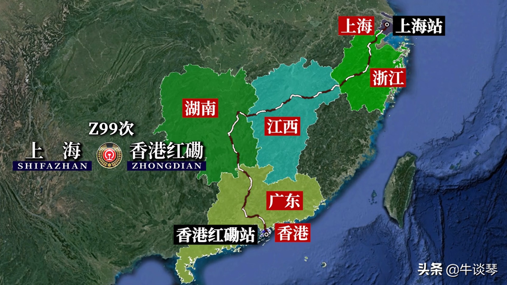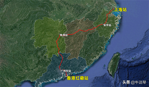 发站:上海(17:45)到站:香港红磡(13:01)候车:1里程:1991公里硬座:224硬卧:381/393/407软卧:699/729历时:19时16分注:文中所有线路图均为作者“牛谈琴”原创绘制,如需转载请注明出处!