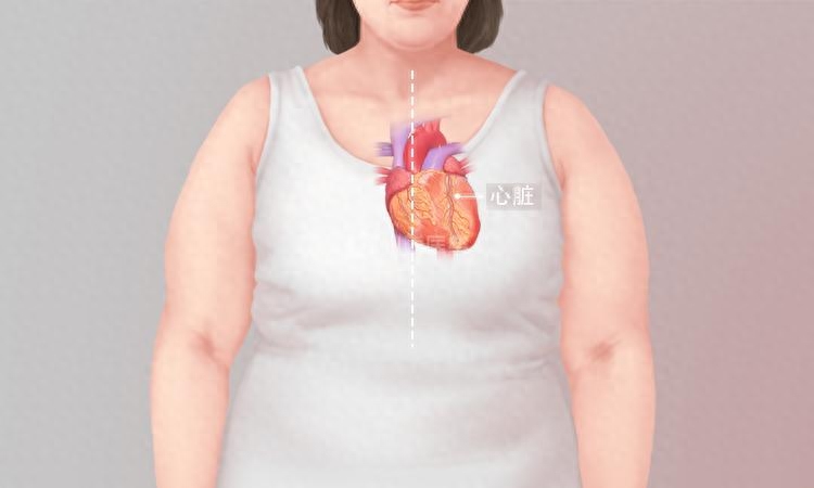 心脏位于胸腔中间略偏左,即身体胸腔正中间偏左一点。
