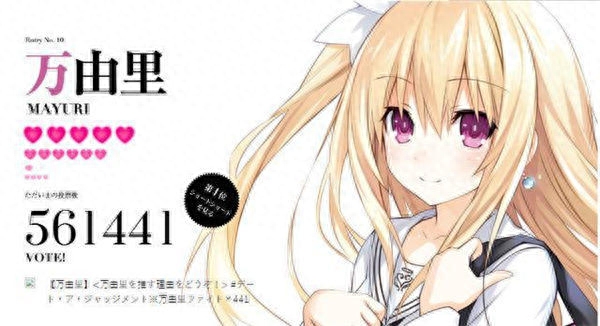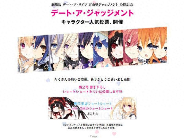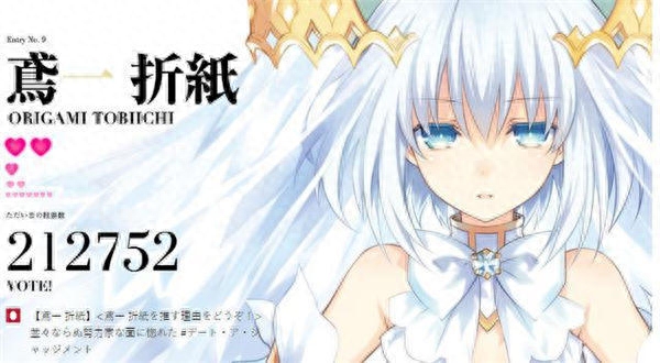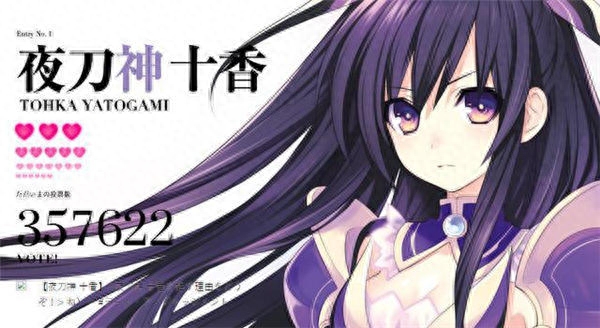 最近,《约会大作战》官网上进行了一次角色人气投票,由于篇幅有限,这里就说一下前两名好了。