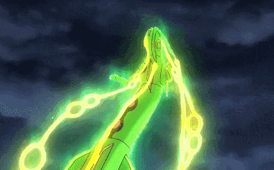 关于烈空坐的传说也是很多,而最为知名的则是其能够在超古代神奇宝贝盖欧卡、固拉多战斗时安抚它们。
