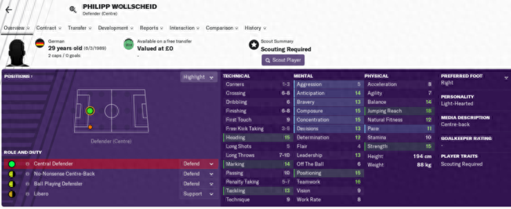 德国后卫的头球一点都不弱,无论是防守中或者定位球进攻时,沃尔沙伊德总能表现出色。身体素质除了速度以外,也都有不错的数值。这位前斯托克城球员,有能力进入到轮换阵容中。