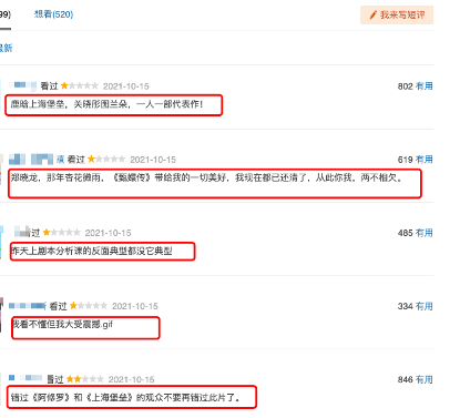 电影在豆瓣上还没有开分数,但是高赞区域几乎全部都是差评。