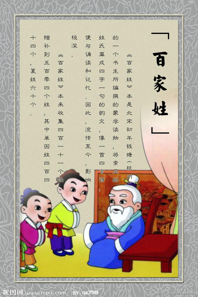 当时,那位儒家学者编撰蒙学读物,将常见的姓氏编成四字一句的韵文,很像一首四言诗,虽然它的内容没有文理,但读来顺口,易学好记。