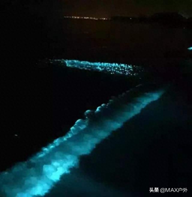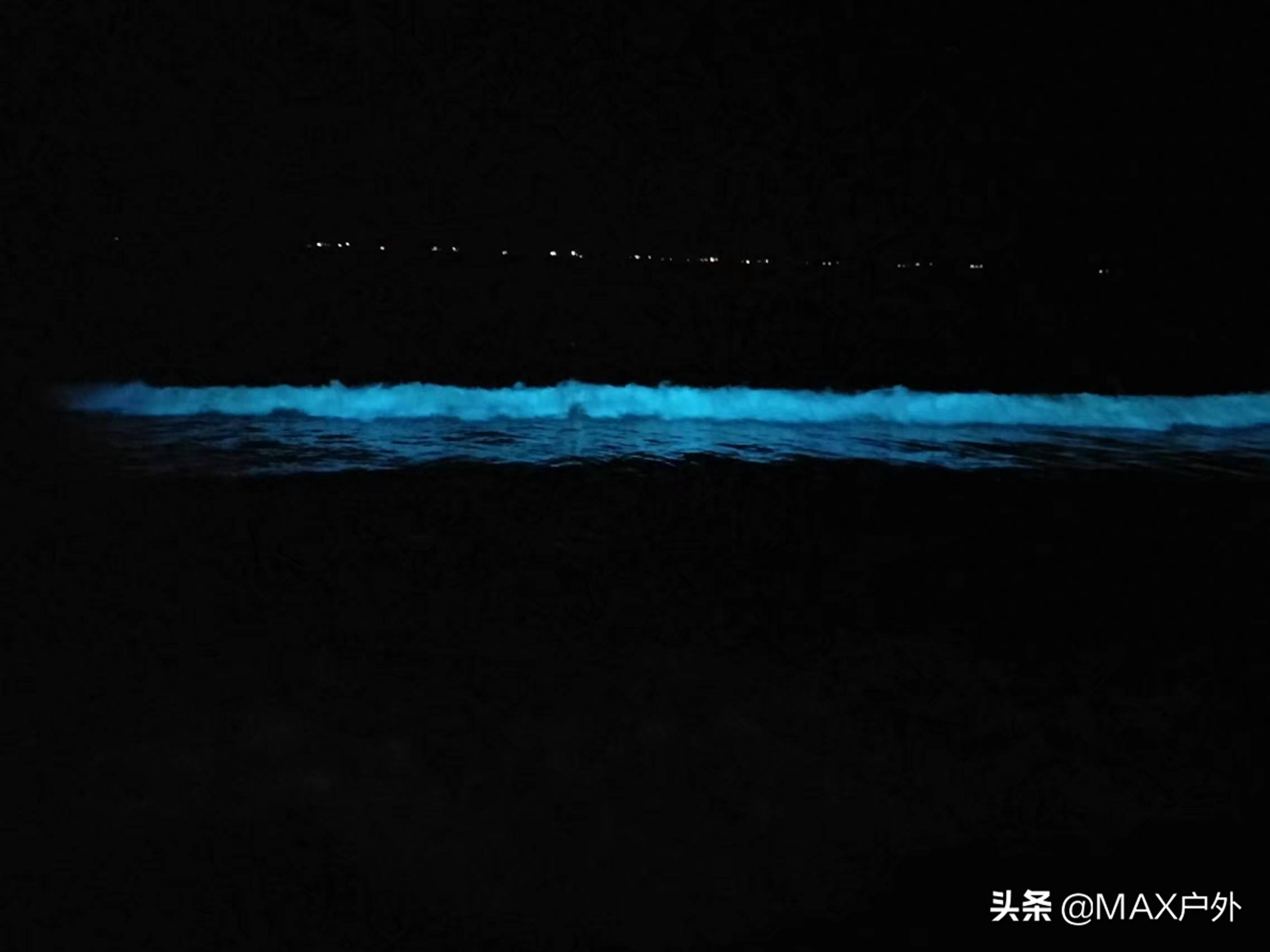 当夜幕降临,海浪泛起蓝色的荧光冲向岸边,形成了一条条梦幻绚丽的蓝色亮光,如同星辰坠落大海,美到窒息。