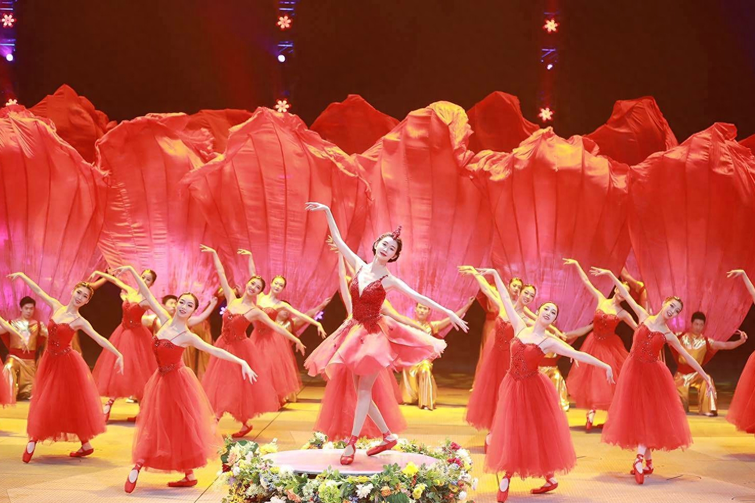 而且在台上,大喵留意到志玲姐姐还连续换了两套造型,第一套红色v领设计的芭蕾短裙,既温柔又突显出林志玲曼妙的好身材。而红色花朵样式拼接了蓬蓬纱裙的下摆,更是优雅万分,特别的讨喜呢。当她在台中央挥舞着手臂舞动,仿若一只白天鹅似的,魅力十足。