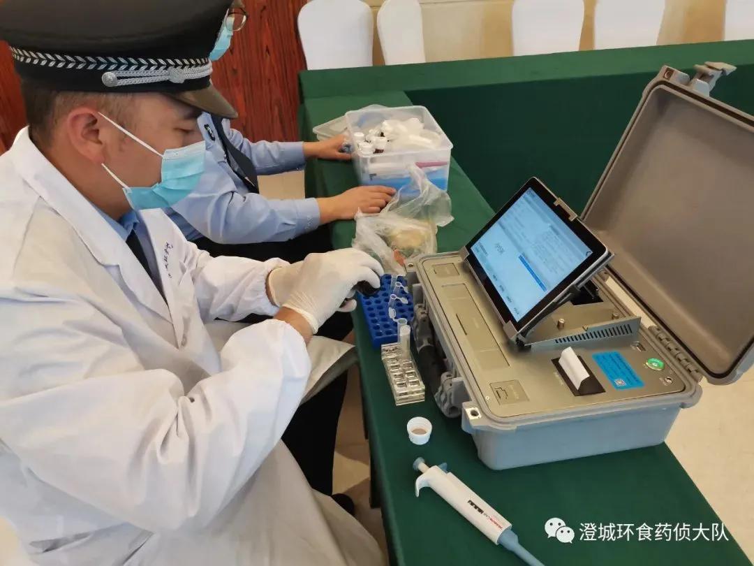 澄城县“第十八次党代大会”在县万丽酒店召开,为确保会议期间用餐安全,防止食物中毒事件的发生,澄城县公安局领导高度重视,环食药犯罪侦查大队充分发挥快检设备职能,提前介入会场,加强监督检查,严把会议期间食品安全关,确保会议顺利召开。