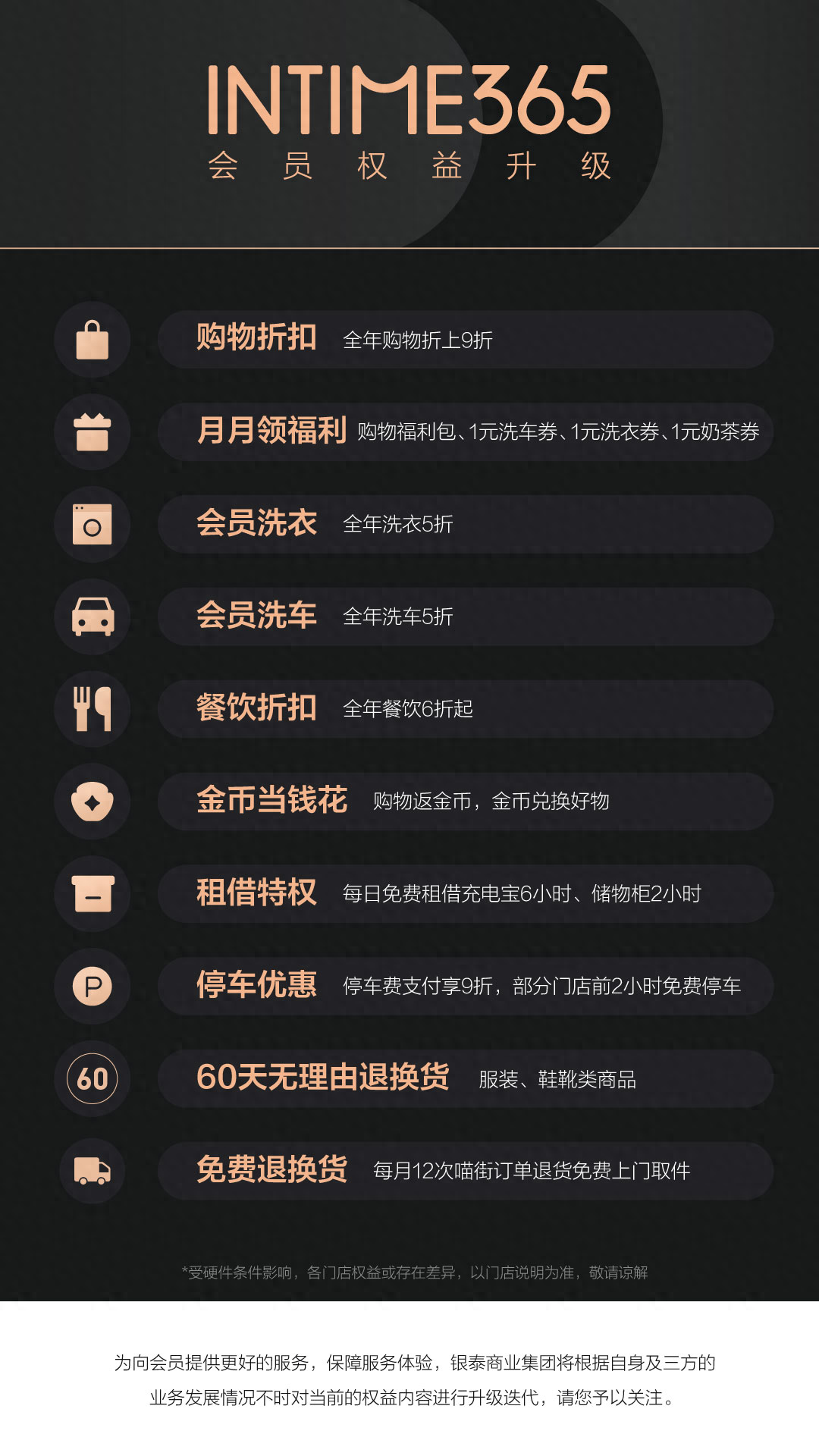 银泰百货365会员权益再升级,可专享两小时免费停车等十大权益