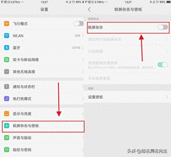 关闭步骤:【设置】--【锁屏杂志与壁纸】--关闭【锁屏杂志】
