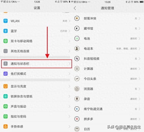 关闭步骤:【设置】--【通知与状态栏】--【通知管理】---有选择的关闭软件推送