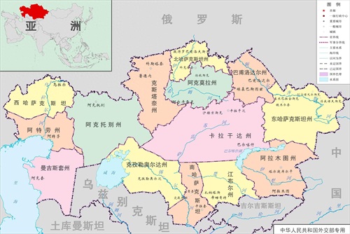 哈萨克斯坦位于亚欧大陆中部,西濒里海(海岸线长1730公里),北邻俄罗斯,东连中国,南与乌兹别克斯坦、土库曼斯坦、吉尔吉斯斯坦接壤。哈萨克斯坦面积272.49万平方公里,居世界第9位,为世界最大内陆国。东西宽约3000公里,南北长约1700公里。