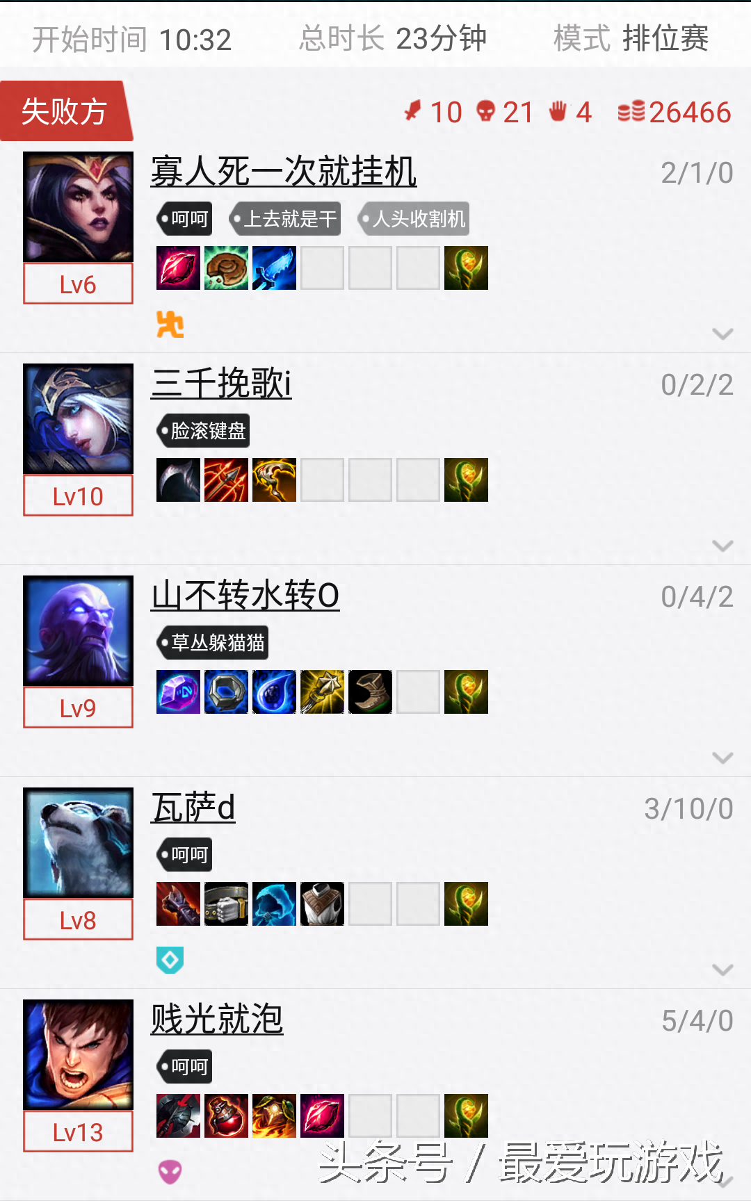 果真人如其名,死了一次就挂机。因为太难死了,最近一次的死亡还是前两百多场的时候,所以英雄联盟推出的裁决之镰对这名玩家毫无作用。