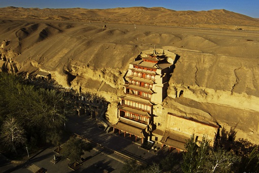 莫高窟的开凿得缘于一位法名乐尊的和尚。据说,公元366年,乐尊云游到此,忽见鸣沙山上金光万道、状若千佛,心有所悟,便在崖壁上凿下了第一个石窟。此后,许多丝绸之路上的商人为了祈求前路的顺利、生意的发达,纷纷在这儿许愿开凿石窟,请民间艺人绘上心中崇拜的神灵莫高窟壁画形象。从十六国到元朝,莫高窟的开凿一直沿续了10个朝代。
