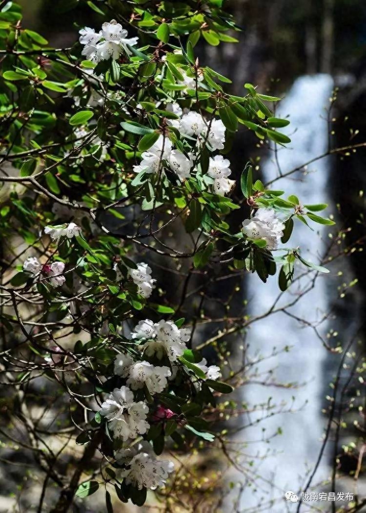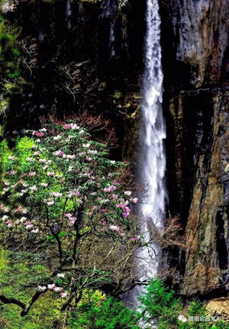 官鹅沟的五月是最美的!这个季节是高山杜鹃盛开的时候,远山白雪在杜鹃花的映衬下更加美丽,山涧瀑布在微风吹动下象白链飞流直下,砸在崖壁上像珍珠一样飘洒,崖柏古松站立在雪域上更加挺拔!高山明镜映衬出的蓝天流云是一幅真实的山水画!