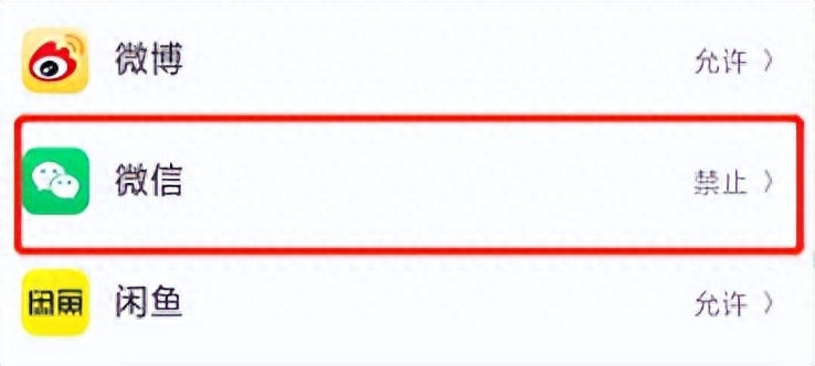 5. 看到“微信”右侧显示禁止。
