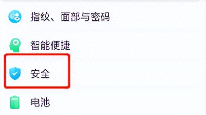 2. 进入设置页面后,选择“安全”,点击打开。