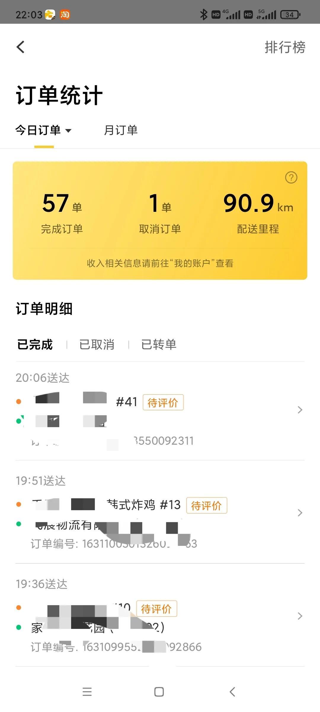 今天跑了57单,无超时单,商家自己取消了一个单,今天跑的很顺,到下午5点半自己的3个班次跑完就已经跑了49单,想着到晚上12点随便都可以搞个8.90单。可惜晚高峰等了半个多小时一单不派,后面才听说由于9月份单量骤降,今天系统后台设置了休息日跟没班次的不派单,晚高峰只跑了别人的几个转单就早早收工了。