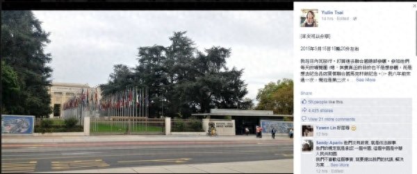 据@中国台湾网 消息,台湾网友Yulin Tsai在脸书爆料,自己在瑞士日内瓦持台湾证件欲参观联合国(欧洲)总部时,遭工作人员拒绝。该工作人员说,“台湾属于中国的一部份,能否请妳拿出你的中国护照或是中国身份证,只要你拿出来,你就可以进去参观。”该女子声称相当不满,觉得受到屈辱。