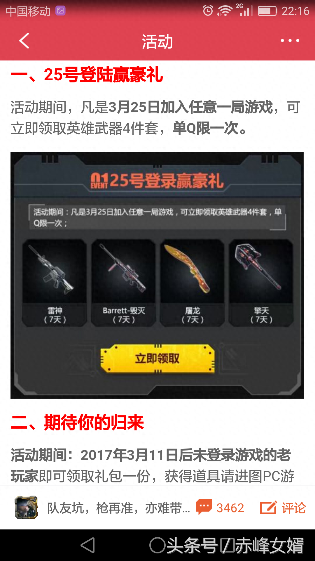 刚在掌上穿越火线app看到一活动,今日玩一局穿越火线 扫描二维码就可以在QQ界面领取英雄武器,但二维码下载不了还不能扫描的哦,是不是有点坑,不过截图后微信扫描或者用另一个手机拍照在扫描均可。由于头条号不能上传二维码,想领取的朋友只能自己去掌火上扫描了,七天英雄级武器,符合要求的领,错过的也不用可惜。