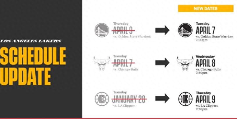 湖人快船延期比赛4月10日举行,湖人将连续三天作战