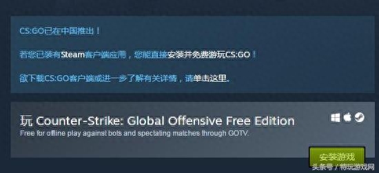在Steam的国区商店,免费版的《CS:GO》已经上架,玩家只需登录Steam并可以直接搜索下载。
