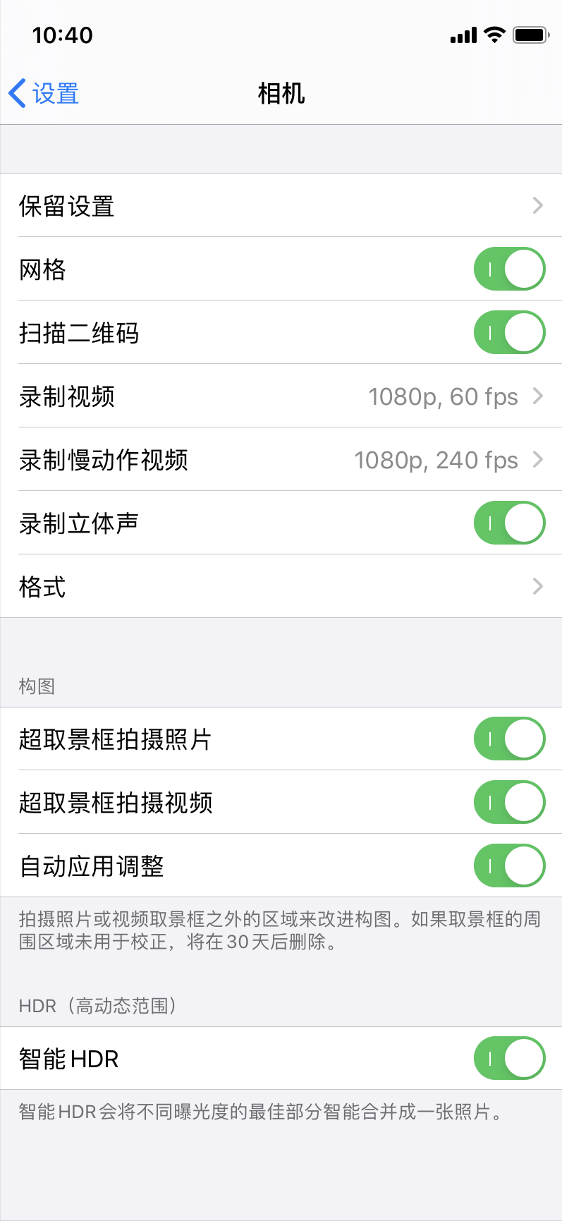 鲜艳模式,而且能设置为一直打开(设置-相机-保留设置-智能控制)