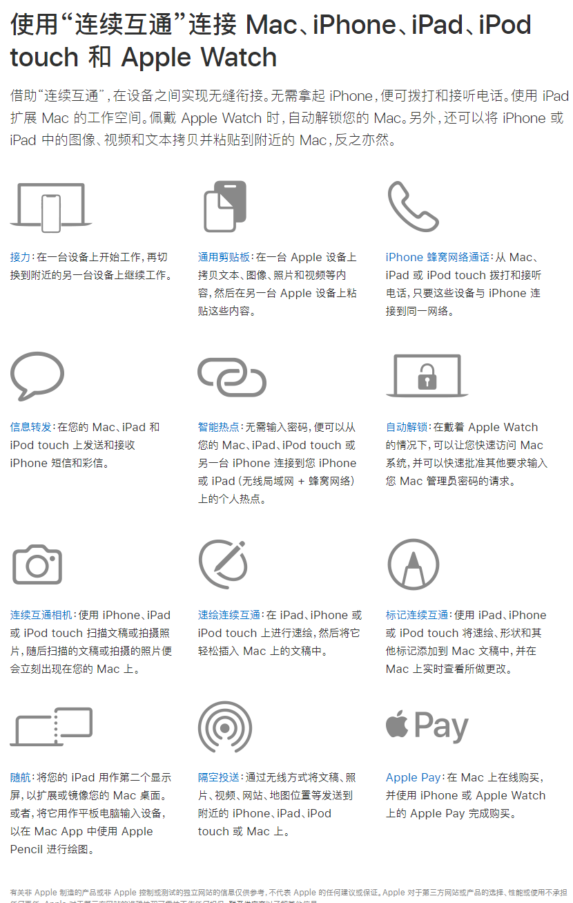 这其实只是个小的扩展了,当iPhone在Mac旁边时,有电话后能选择在Mac上接听。以及在Mac下,当iPhone在其附近时,会自动在Wifi选择栏里显示可以使用该iPhone的热点网络。以及在Mac右键菜单里,有个专门的选项叫“使用iPhone拍照”,可以通过这个功能,及时打开iPhone的拍照功能来拍照或扫描文档,完成后就能自动在Mac上呈现。