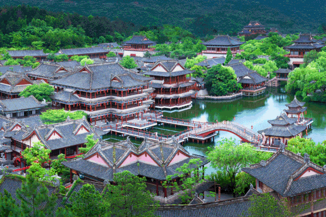 梦泉谷温泉,是被誉为具有汉唐气质“长乐坊”的古风温泉。