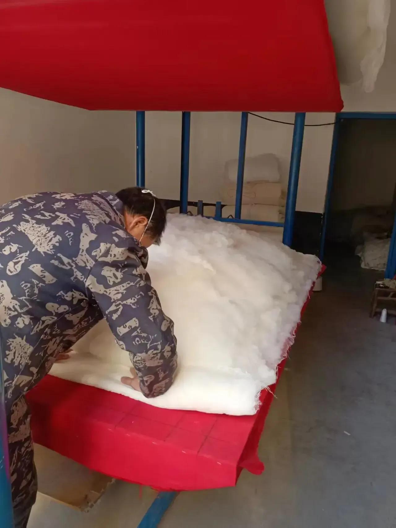 另外,就是羊绒被贴身性好,但羊毛吸湿性强,长期潮气积累很容易造成羊毛结板,甚至会有异味的产生,所以建议5年就要换掉。