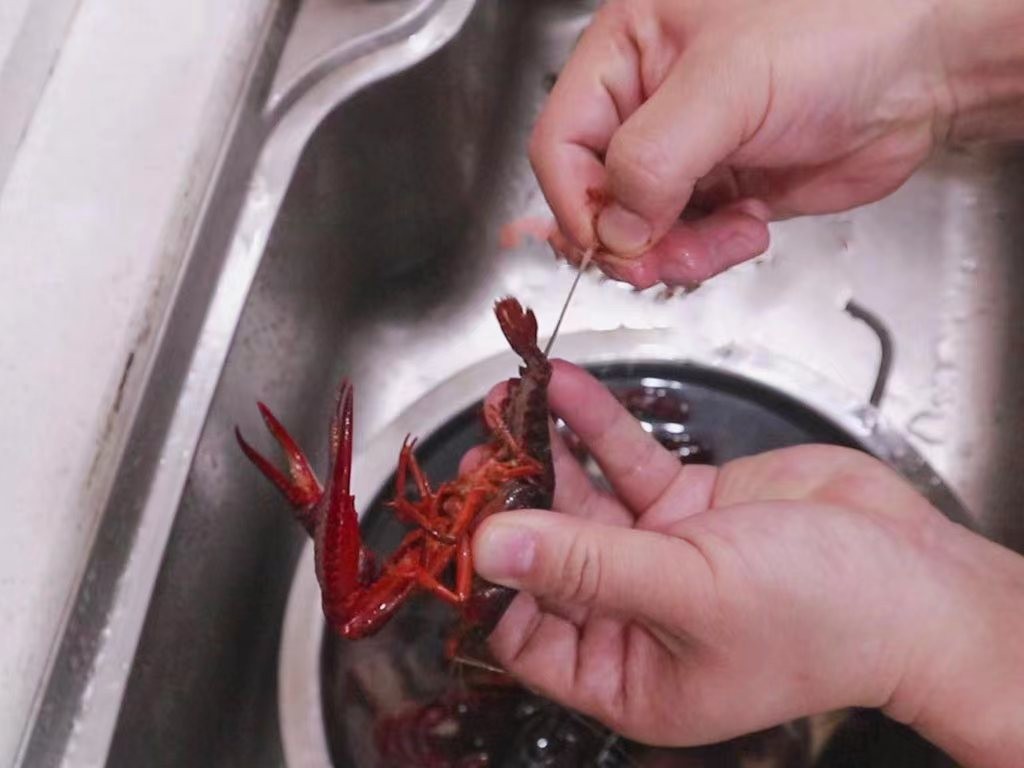 选择人工养殖的小龙虾,且鲜亮活泼体型大。小龙虾腹部的淤泥和杂质,不处理干净的话,吃着会发苦而且腥味重。我们可以用牙刷或者刷子,把它的背部和腹部一个一个地刷干净。害怕被夹到手的话,就用手抓住龙虾的背部,用毛刷在它的腹部多刷几遍。
