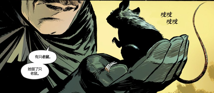 蝙蝠侠从管家哪里得到消息后前来查看发现了她留下的一个小小纪念品,一只老鼠。游戏开始了这次是她赢了。