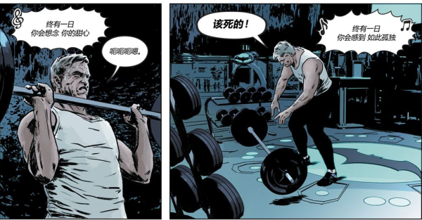 老蝙蝠试着举起杠铃,但是显然他失败了。