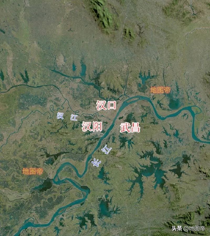 汉江在武汉汇入长江,形成一个丁字水路,将武汉分为三部分,即武汉三镇。武昌在长江以东,汉口和汉阳在长江以西,汉口在汉江以北,汉阳在汉江以南。