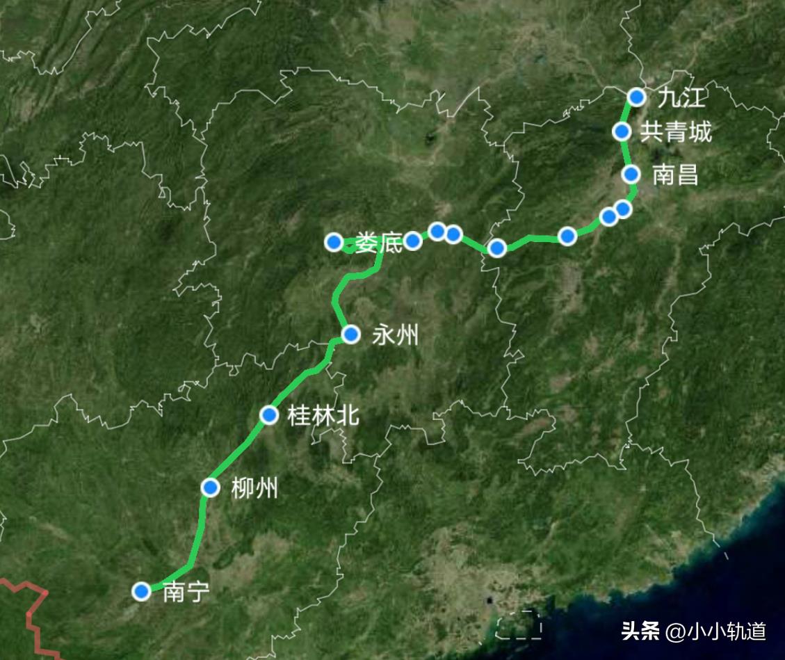 途经线路:沿昌九城际(九江站-共青城站),昌北联络线,京九线(南昌站),向塘联络线,沪昆线(丰城站-娄底站),娄邵线(娄底站),邵永线,衡柳线(永州站-柳州站),柳南客专(柳州站),湘桂线(南宁站)等运行。