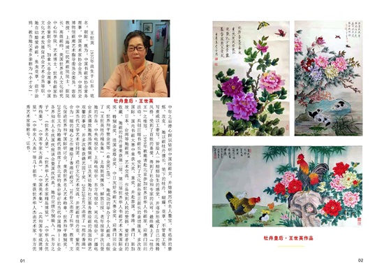 王世英 1937年出生于山东,笔名:朝阳。现为:中国书画家协会常务理事,中国美术家协会会员,中国历史博物馆画廊艺术指导委员会委员、客座教授、上海浦江民族画院院士、副院长、高级画师,美国世界名人文化研究中心科学院:艺术博士,世界书画家协会名誉副会长、加拿大总会理事、中国文化艺术发展促进会艺术会员等职。 她自幼酷爱诗画,鱼虫花草,信手涂鸦,被当地父老乡亲称为“小才女”。中年之后潜心探识钻研中国绘画史,并熔铸历代名人墨宝,有选择的磨炼、攻克。 她以画牡丹擅长,笔下的牡丹、蝴蝶、花草,不管是工笔、写意或以工带写,皆给人一种栩栩如生的感觉,并逐步形成了自己的独特风格,受到了百姓的喜爱,得到了社会和专家的认可,最终戴上了“牡丹王”之桂冠。 1999年被邀请赴北京参加世界百华人书画家,迎澳门回归活动,共创巨幅书画长卷,受到了文化部孙家正部长的亲切接见。多次在国际、国内书画大赛中荣获大奖、重奖,并赴泰国、香港、澳门、新加坡、日本、台湾等地画展,艺术交流。作品受到人民的赞扬,爱好者们的收藏。 她画的牡丹曾荣获第二届、第三届世界华人书画艺术大赛国际金奖、特别金奖,法国金塔金奖,中日友好书画大赛金奖,迎澳门回归金奖,世界和平赞金奖等(单金奖14项)。 她成功的举办了个人画展,出版了“王世英牡丹精品集”,上海新闻媒体:解放日报、老年报等多次刊登她的作品。中央电视台、上海电视台、东方电视台、闸北电视台、广播电台多次播放她现场挥毫做画,以及采访她为社区服务教绘画的场面和德艺双馨的事迹,并多次荣获德艺园丁奖。2002年6月又出席了“相约香港”中国当代文学艺术访问团,进行文化艺术交流,并把画有牡丹花、紫荆花合为一幅的精心之作赠给了香港行政区,7月份又出席了科学、教育、文化促进世界和平国际研讨会,荣获世界名人艺术勋章、世界和平特别奖。2003年又作为特邀代表出席了在北京钓鱼台举行的当代中国精神——社会各界知名人士庆国庆座谈会暨国庆庆典。她的业绩分别编入:《东方之子》、《世界名人录》、《世界华人艺术名家精品博览》、《中华儿女优秀档案》、《中国专家大辞典》、《中国美术集》、《共和国专家成就博览》、《中华名人大典》等几十部书。荣获世界华人杰出艺术家、东方优秀艺术家等称号、证书。