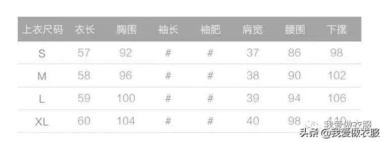 如果穿着太宽松或紧的人可以适当增加或减少胸围,袖笼,等等的数据。如果对寸不熟悉的同学可以换算一下,1寸=3.3CM,有不明白的可以在下面评论区留言。