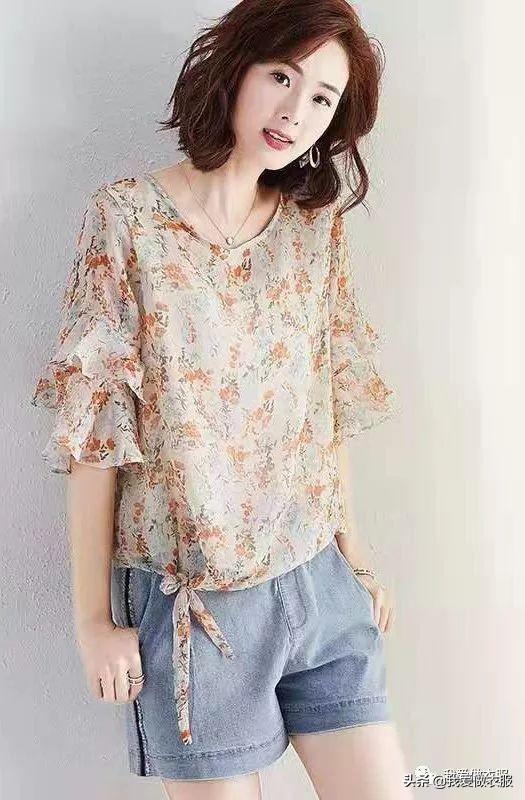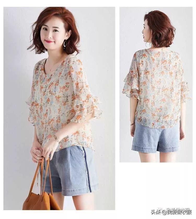 夏季雪纺荷叶袖宽松上衣,显瘦又好看,快做一件