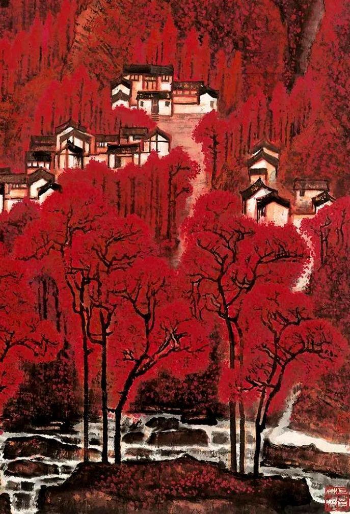 红色画卷 - 中国名画:李可染先生名作《看万山红遍,层林尽染》